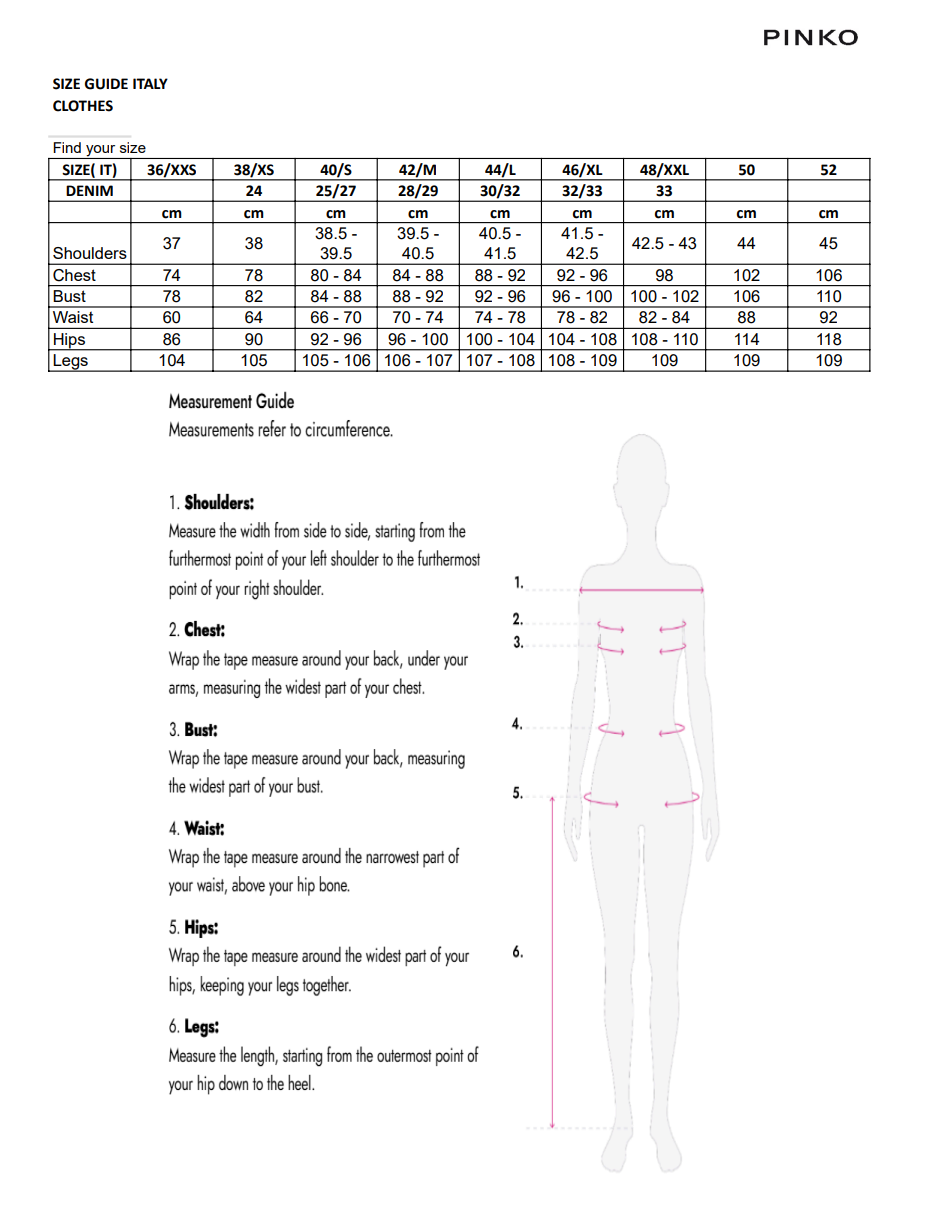 Size chartProduct description: